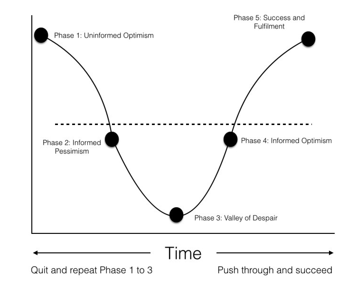 Valley of Despair = Six months of losses. Maybe longer. The voice that says "maybe I'm just not cut out for this."